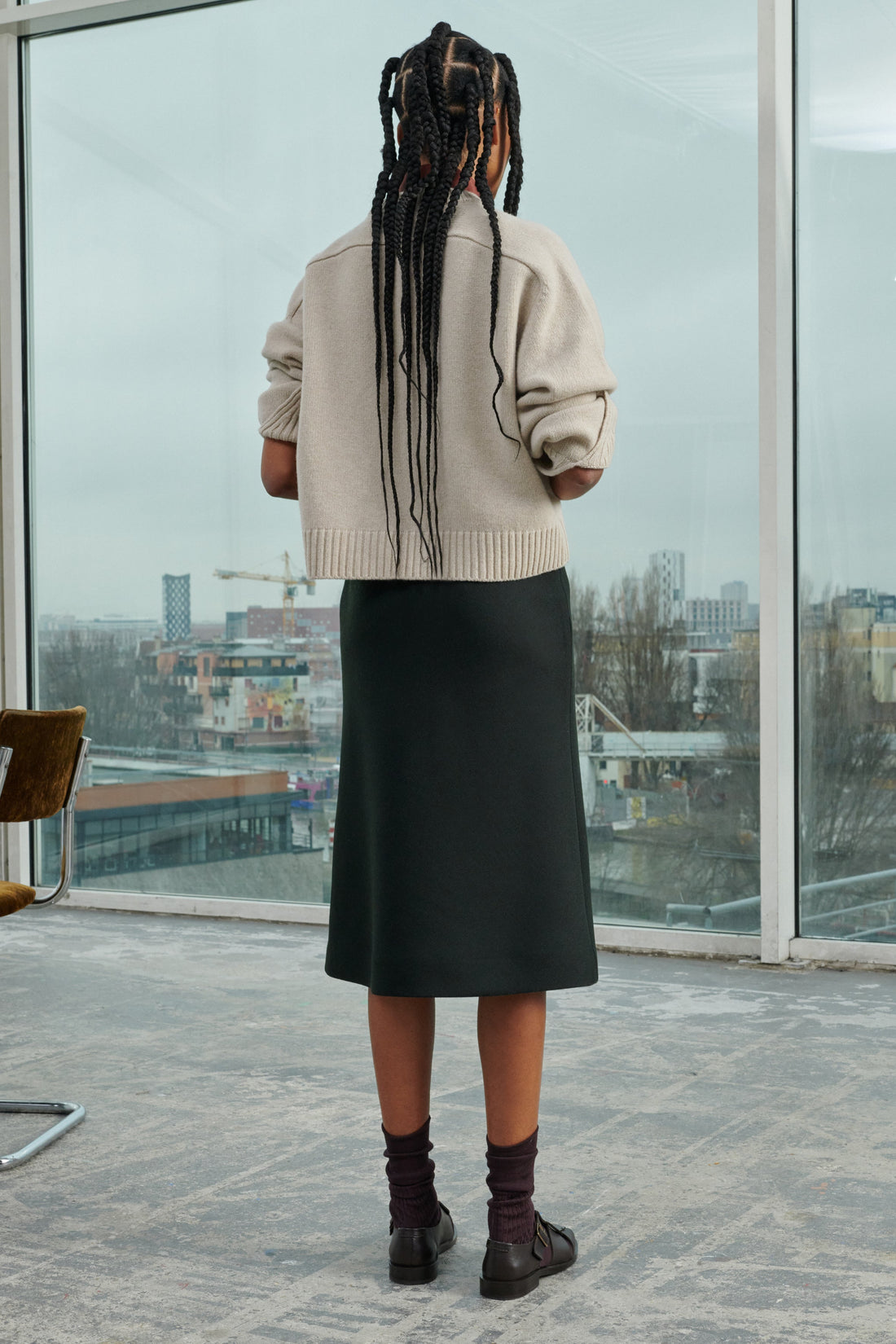 La mannequin is 1m80 (5'11) tall and wears a size 36.