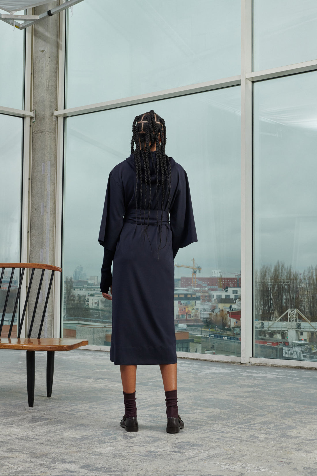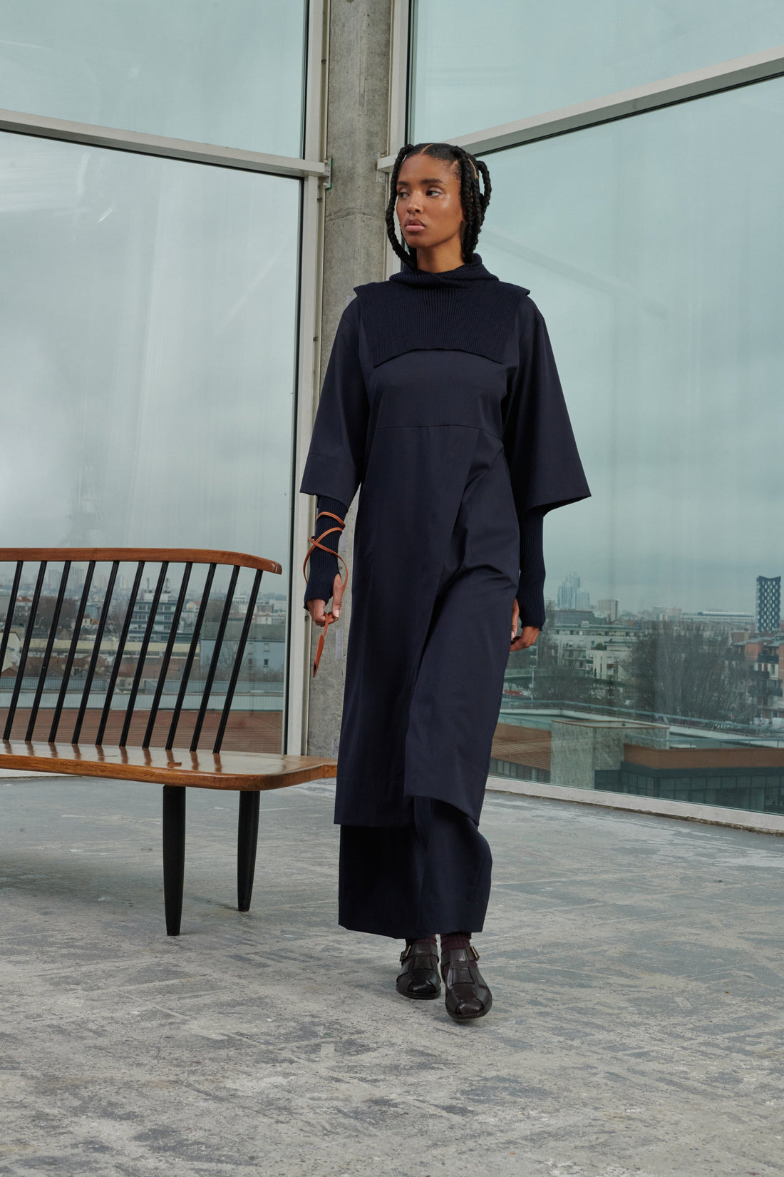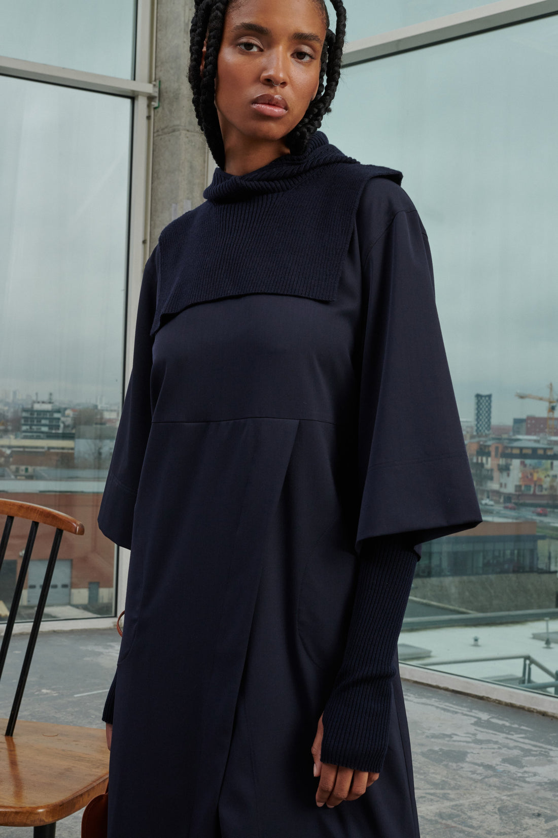 Light woollen gabardine dress navy